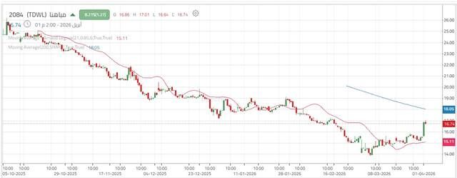 وفي المقابل، قد تمثل العودة لاختبار مستوى 15.90 ريال مع ظهور إشارات إيجابية فرصة لبناء مراكز شرائية.