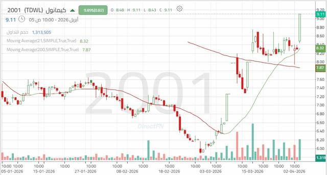 سهم "كيمانول": إشارات فنية داعمة لاستمرار الحركة التصحيحية الصاعدة, اليوم الأحد 5 أبريل 2026 11:37 صباحاً