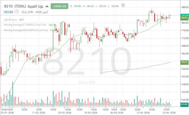 وعلى الجانب الآخر، الثبات دون مستوى دعم 180 ريال، يضعف من فرص استمرار الصعود. وقد نشهد بعض التصحيحات نحو مستويات أدنى.