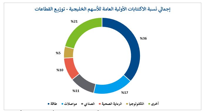 على الرغم من أنه لم يشهد قطاع الطاقة غير اكتتابين، إلا أنها شكلت ما يقرب 36.6% من إجمالي قيمة الاكتتابات الأولية العامة للأسهم الخليجية خلال العام 2023.