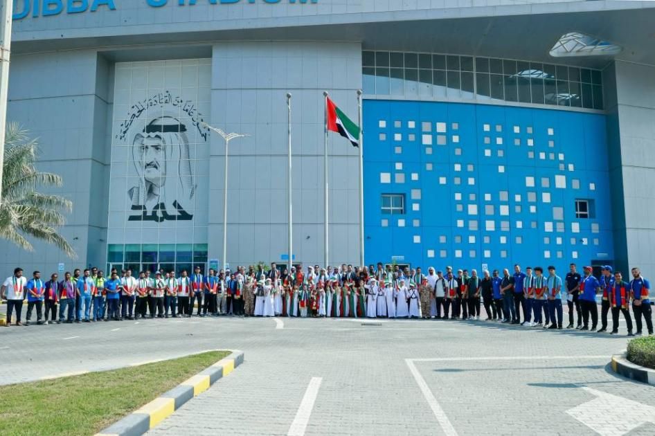 وتم الاحتفال برفع علم دولة الإمارات العربية المتحدة في السارية الرئيسية لاستاد دبا، بالتزامن مع عزف السلام الوطني، في مشهد يجسد الاعتزاز بالهوية الوطنية وحرص النادي على المشاركة في المناسبات الوطنية.
