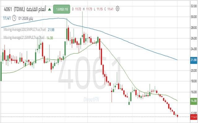 سهم "أنعام القابضة" ضمن اتجاه هابط يعكس سيطرة القوة البيعية, اليوم الاثنين 29 ديسمبر 2025 02:50 مساءً