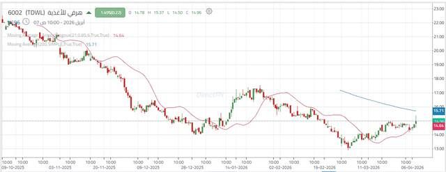 كما أن أقرب دعم ثانوي يجب الحفاظ عليه عند 14.20 ريال لتجنب سلسلة تراجعات نحو الدعم التاريخي عند 12.90 ريال.